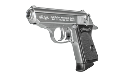 Walther PPK Semi-Auto Pistol 4796001, 380 ACP, 3.3″, Black Plastic Grips, Stainless Finish, 6 R